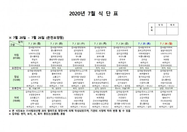 7월 넷째주 식단표 페이지 정보 작성자 은천노인복지회 작성일20-08-10 11:31 조회166,500회 댓글0건 관련링크 이전글 다음글 목록 답변 본문 . 이전글 다음글 목록 답변