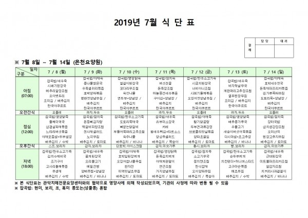 7월 둘째주 식단표 페이지 정보 작성자 은천노인복지회 작성일19-07-15 10:56 조회199,055회 댓글0건 관련링크 이전글 다음글 목록 답변 본문 7월 둘째주 식단표 이전글 다음글 목록 답변