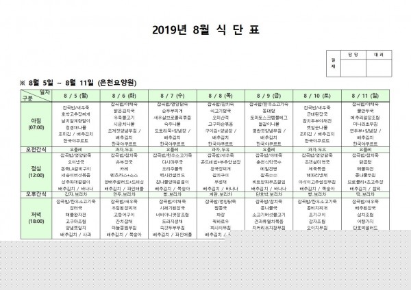 8월 둘째주 식단표 페이지 정보 작성자 은천노인복지회 작성일19-08-19 15:26 조회197,915회 댓글0건 관련링크 이전글 다음글 목록 답변 본문 8월 둘째주 식단표 이전글 다음글 목록 답변