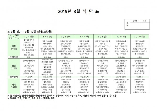3월 첫째주 식단표 페이지 정보 작성자 은천노인복지회 작성일19-03-13 09:44 조회206,847회 댓글0건 관련링크 이전글 다음글 목록 답변 본문 3월 첫째주 식단표 이전글 다음글 목록 답변