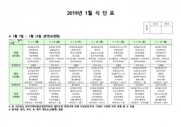 1월 첫째주 식단표 페이지 정보 작성자 은천노인복지회 작성일19-01-22 13:31 조회209,687회 댓글2건 관련링크 이전글 다음글 목록 답변 본문 1월 첫째주 식단표 이전글 다음글 목록 답변