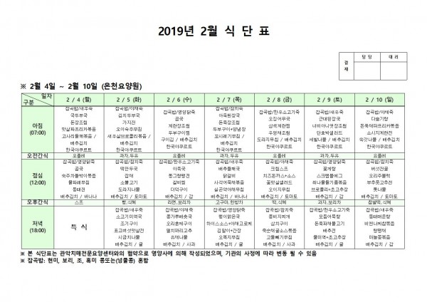 2월 첫째주 식단표 페이지 정보 작성자 은천노인복지회 작성일19-02-13 17:29 조회207,565회 댓글0건 관련링크 이전글 다음글 목록 답변 본문 2월 첫째주 식단표 이전글 다음글 목록 답변