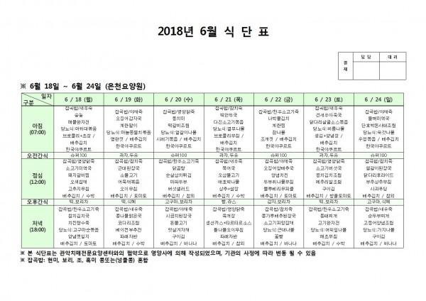 6월 넷째주 식단표 페이지 정보 작성자 은천노인복지회 작성일18-06-25 11:11 조회210,947회 댓글0건 관련링크 이전글 다음글 목록 답변 본문 6월 넷째주 식단표 이전글 다음글 목록 답변