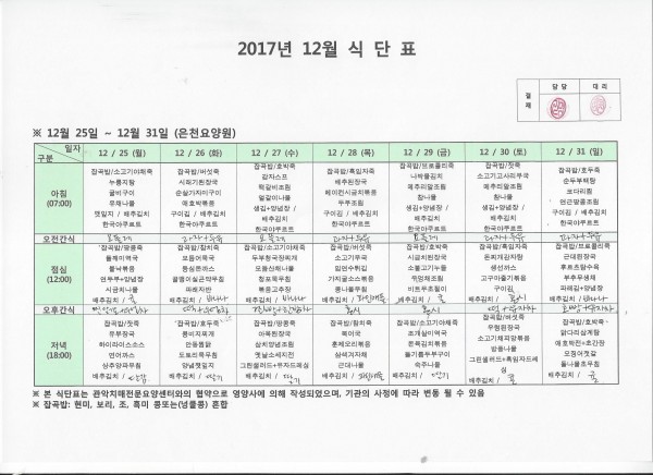 12월 다섯째주 식단표 페이지 정보 작성자 은천노인복지회 작성일17-12-26 11:49 조회193,153회 댓글0건 관련링크 이전글 다음글 목록 답변 본문 12월 다섯째주 식단표 이전글 다음글 목록 답변