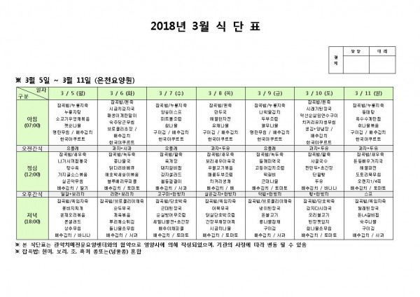 3월 둘째주 식단표 페이지 정보 작성자 은천노인복지회 작성일18-03-05 16:27 조회197,616회 댓글0건 관련링크 이전글 다음글 목록 답변 본문 3월 둘째주 식단표 이전글 다음글 목록 답변