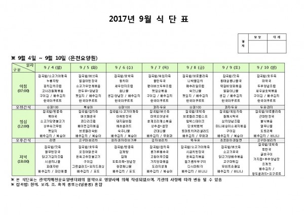 9월 첫째주 식단표 페이지 정보 작성자 은천노인복지회 작성일17-09-04 15:14 조회183,859회 댓글0건 관련링크 이전글 다음글 목록 답변 본문 9월 첫째주 식단표 이전글 다음글 목록 답변