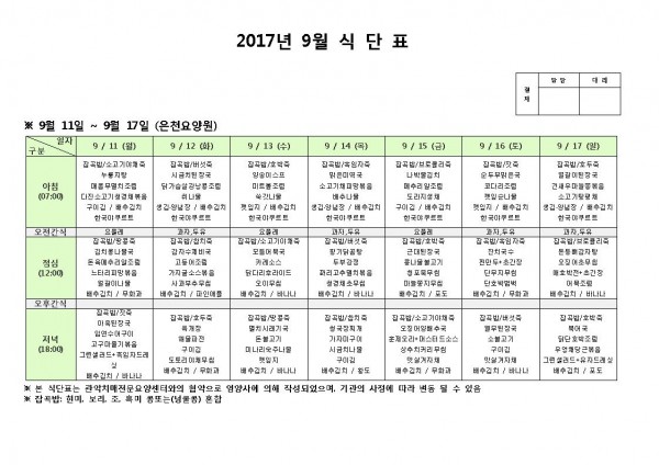 9월 둘째주 식단표 페이지 정보 작성자 은천노인복지회 작성일17-09-11 17:01 조회183,740회 댓글0건 관련링크 이전글 다음글 목록 답변 본문 9월 둘째주 식단표 이전글 다음글 목록 답변