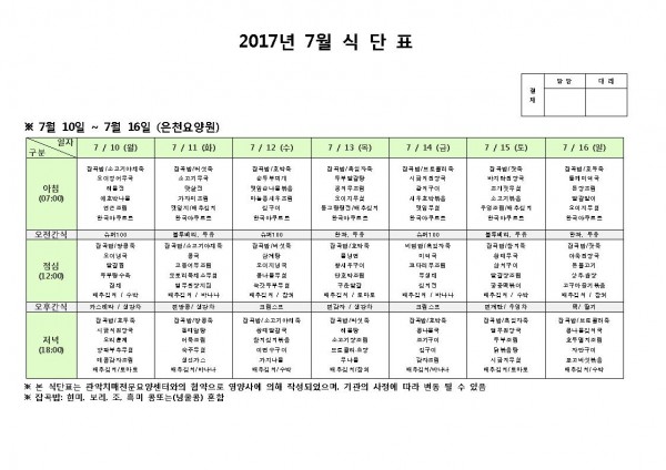 7월 둘째주 식단표 페이지 정보 작성자 은천노인복지회 작성일17-07-11 09:20 조회181,203회 댓글0건 관련링크 이전글 다음글 목록 답변 본문 7월 둘째주 식단표 이전글 다음글 목록 답변