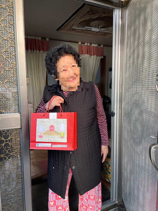 [재가노인지원센터] 설명절 선물지원서비스 페이지 정보 작성자 은천노인복지회 작성일21-02-26 09:42 조회25,338회 댓글0건 관련링크 이전글 다음글 목록 답변 본문 2021년 설 멸정을 맞이하여 어르신들을 찾아뵙고 선물을 전하면서 안부확인을 진행하였습니다. 이전글 다음글 목록 답변