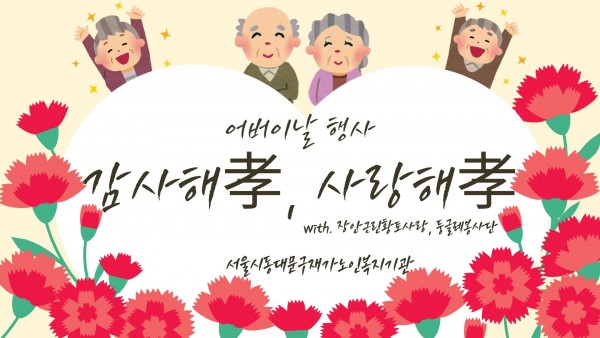 [서울시동대문구재가노인복지기관] 어버이날 기념 '감사해孝, 사랑해孝' 페이지 정보 작성자 은천노인복지회 작성일25-05-14 15:07 조회4,095회 댓글0건 관련링크 이전글 다음글 목록 답변 본문 2025년 5월 어버이날 기념으로 선물과 간식을 전달해드리며 행사를 진행하였습니다. 이전글 다음글 목록 답변