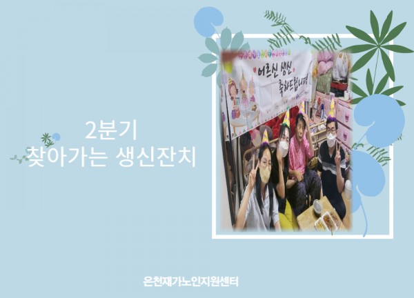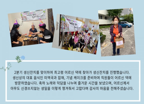 [재가노인지원서비스] 2분기 찾아가는 생신잔치 페이지 정보 작성자 은천노인복지회 작성일22-07-06 13:26 조회18,522회 댓글0건 관련링크 이전글 다음글 목록 답변 본문 2분기 찾아가는 생신잔치 이전글 다음글 목록 답변