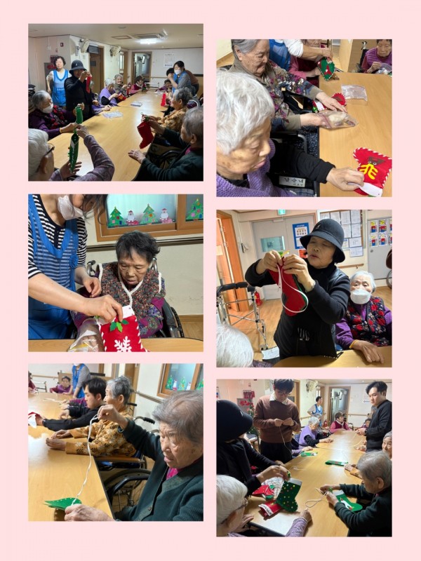 12월 19일 미술치료 프로그램 페이지 정보 작성자 은천노인복지회 작성일24-12-19 14:57 조회5,203회 댓글0건 관련링크 이전글 다음글 목록 답변 본문 바느질하여 산타양말 만들기♥ 이전글 다음글 목록 답변